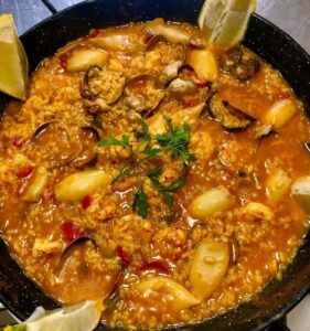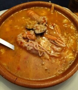 Arroz de marisco caldoso.