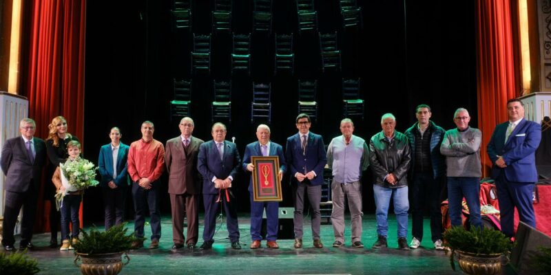Un solemne acto, mantenido por Paola López, que contó con la presencia de la Agrupación Musical Cristo de la Buena Muerte de la localidad, donde se puso en valor la historia centenaria del club y su labor dentro y fuera del terreno de juego con una proyección previa a que el alcalde hiciera entrega del reconocimiento.
