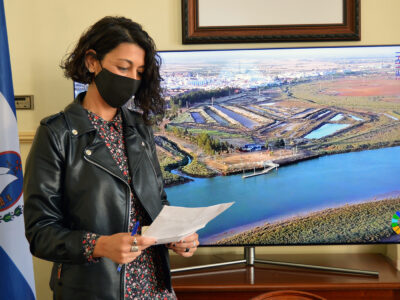 La delegada de la Junta de Andalucía en Huelva, Bella Verano, y el director provincial de la Agencia de Vivienda y Rehabilitación de ...