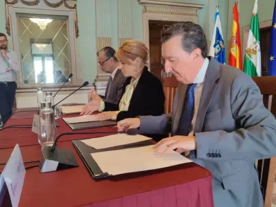 El Coordinador Autonómico de Izquierda Unida en Andalucía y Diputado por Sumar en el Congreso, Toni Valero, junto al Diputado Provincial de Izquierda ...