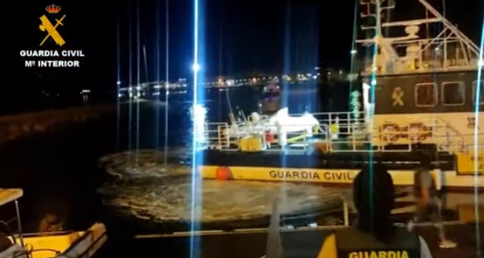 La embarcación es localizada y tras ser abordada se detienen a sus dos tripulantes, que al verse sorprendidos tiran por la borda fardos de hachís que posteriormente son sacados del agua, recuperándose 19 fardos de hachís que arrojan un peso aproximado de 570 kilogramos.