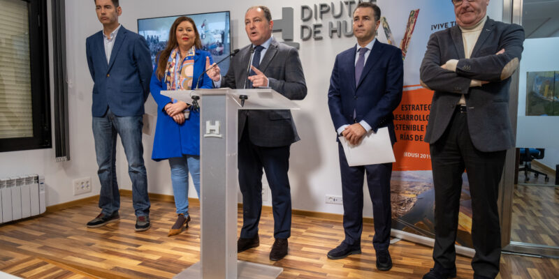 El presidente de la Diputación de Huelva, David Toscano, acompañado por el vicepresidente responsable de Nuevas Tecnologías, Felipe Arias; el vicepresidente responsable de Infraestructuras y Arquitectura, Manuel Cayuela; la vicepresidenta responsable de Fondos Europeos, Rocío Moreno; y el vicepresidente de Economía y Hacienda, José Manuel Zamora, ha ofrecido esta mañana a los medios el balance de la Estrategia de Desarrollo Urbano Sostenible Integrado (EDUSI) Vive tu Ría- Rías de Huelva 2020 (Rías del Tinto y Odiel), que concluye este 31 de diciembre.