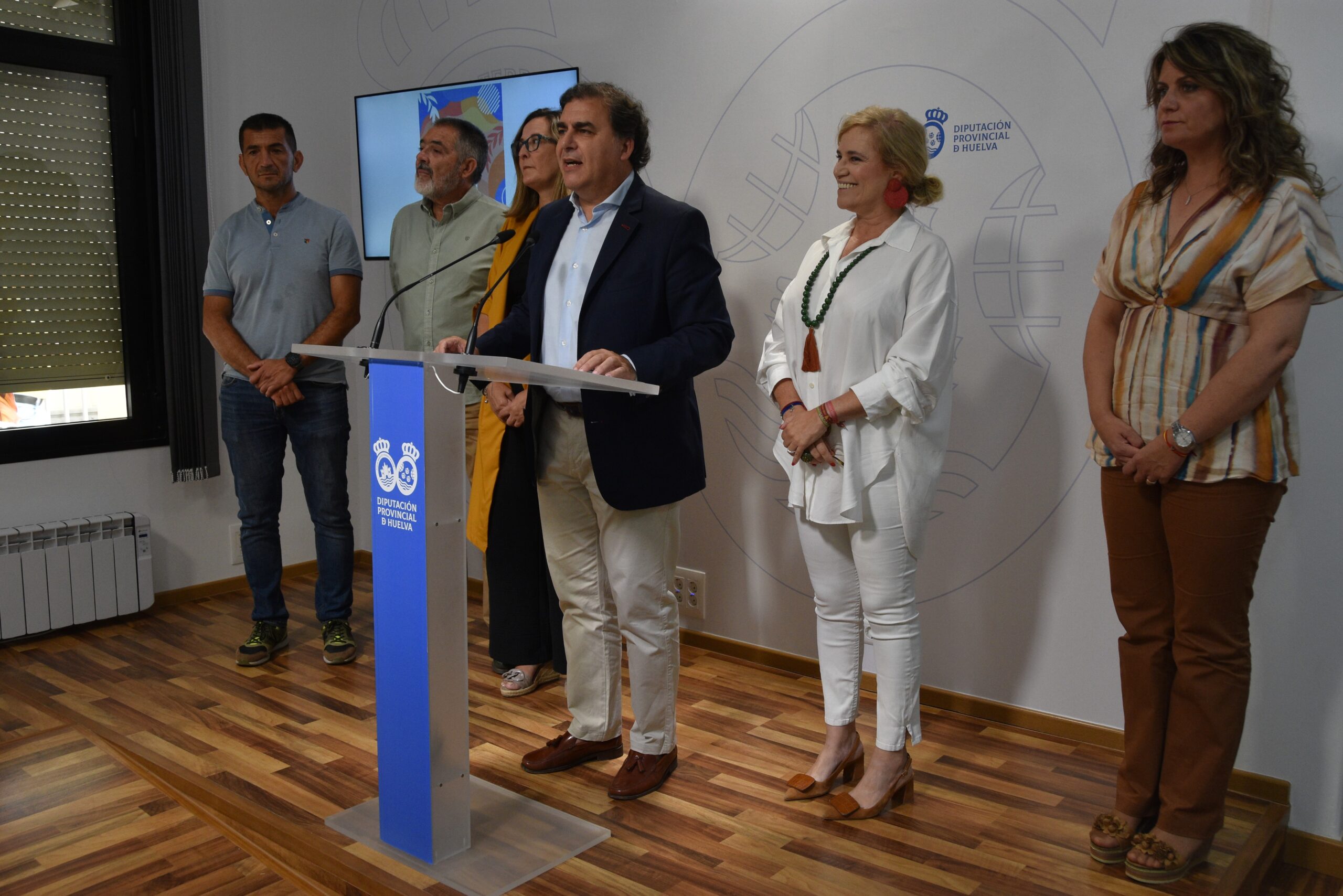 El alcalde y la diputada de Cultura han estado acompañados en la presentación del programa de verano por los ediles de Deportes, Cultura, Festejos y El Portil del municipio costero; Sebastián Pomares, Enrique Orta, Jimena Donoso y Angustias Domínguez, respectivamente.