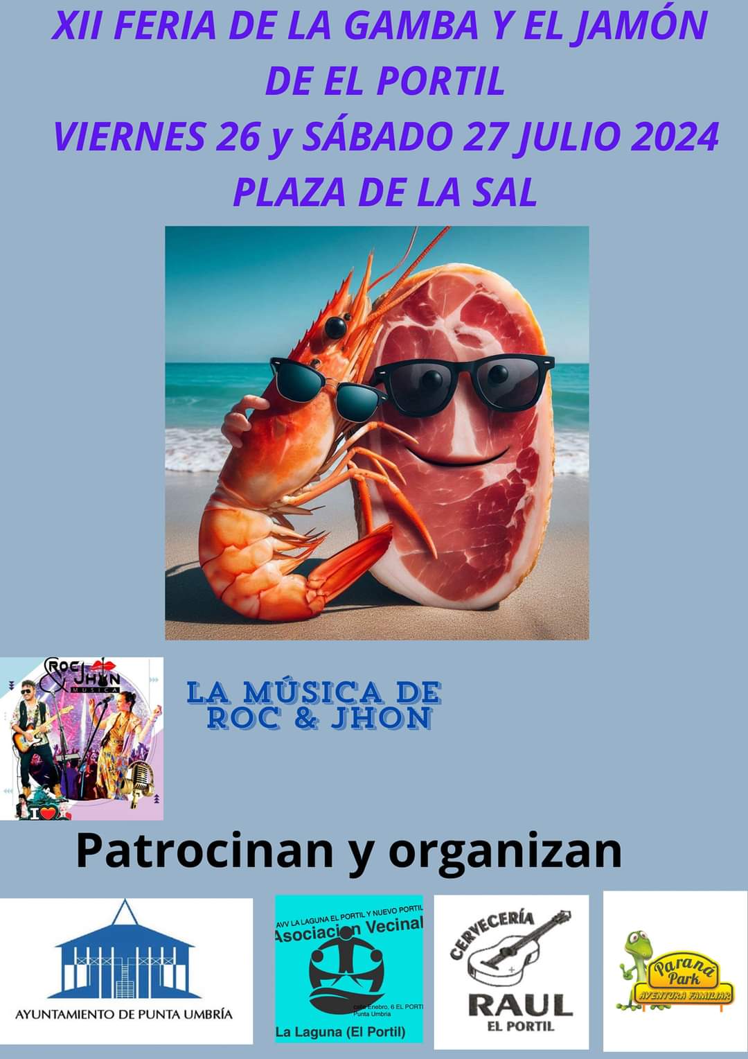 Un año más, la Feria de la Gamba y el Jamón en El Portil está organizada por la asociación la Laguna, junto a la colaboración del Ayuntamiento de Punta Umbría, Cervecerías Raúl y Paraná Park.