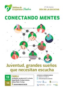 Por ello, el Teléfono de la Esperanza de Huelva ha impartido una charla bajo el lema de esta campaña, CONECTANDO MENTES, a los más implicados, los jóvenes. Acudimos el pasado martes 19 de marzo al Colegio Virgen de Belén donde un grupo de jóvenes pudieron tomar conciencia de la importancia de la escucha. En este contexto la habilidad para escuchar supone un papel fundamental para establecer conexiones significativas con los jóvenes. En la era de las redes sociales y la comunicación digital instantánea la atención plena y la escucha activa son más valiosas que nunca. Seguimos trabajando en ello más allá de este día dada la importancia de la salud emocional en los adolescentes. Agradecidos a instituciones como son Ayuntamiento de Huelva, Ayuntamiento de Palos de la Frontera, Autoridad Portuaria de Huelva, Fundación Caja Rural del Sur, Fundación Obra Social la Caixa, por la implicación con nuestra entidad para la ejecución de proyectos asociados a la salud emocional.