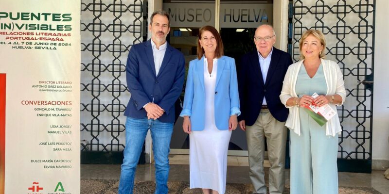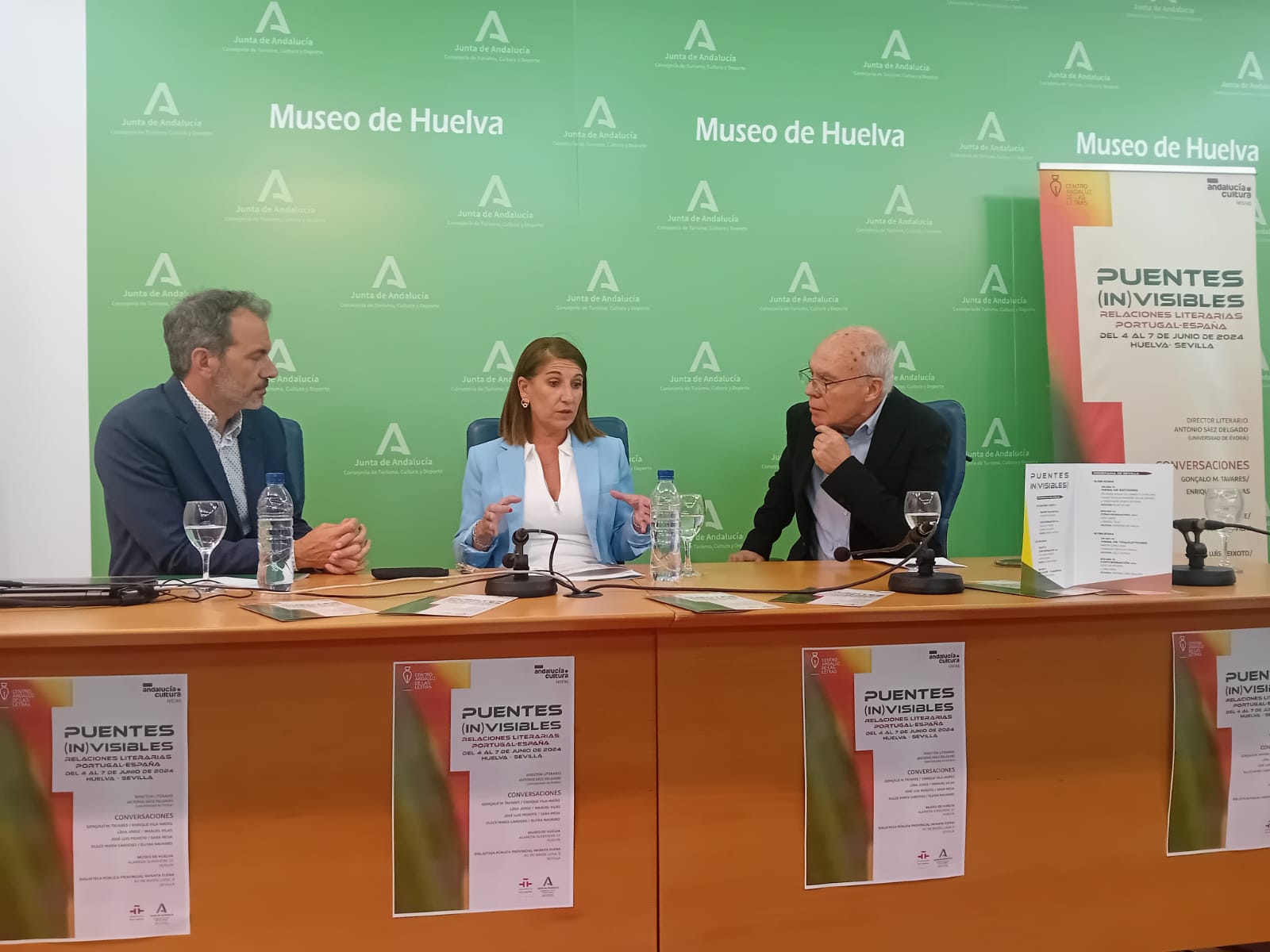 El Centro Andaluz de las Letras, gestionado por la Consejería de Turismo, Cultura y Deporte a través de la Agencia Andaluza de Instituciones Culturales, organiza el ciclo ‘Puentes (In)visibles’ para favorecer el intercambio literario entre autores españoles y portugueses. Con la dirección de Antonio Sáez Delgado, la cita reunirá a autores de ambos países en los distintos actos organizados en Sevilla y Huelva entre el 4 y el 7 de junio. Hoy se ha presentado el programa en un acto que ha estado conducido por Justo Navarro, director del CAL, y al que ha asistido la delegada territorial de Turismo, Cultura y Deporte en Huelva, Teresa Herrera, y el gerente de la Agencia Andaluza de Instituciones Culturales, Javier Rivera.