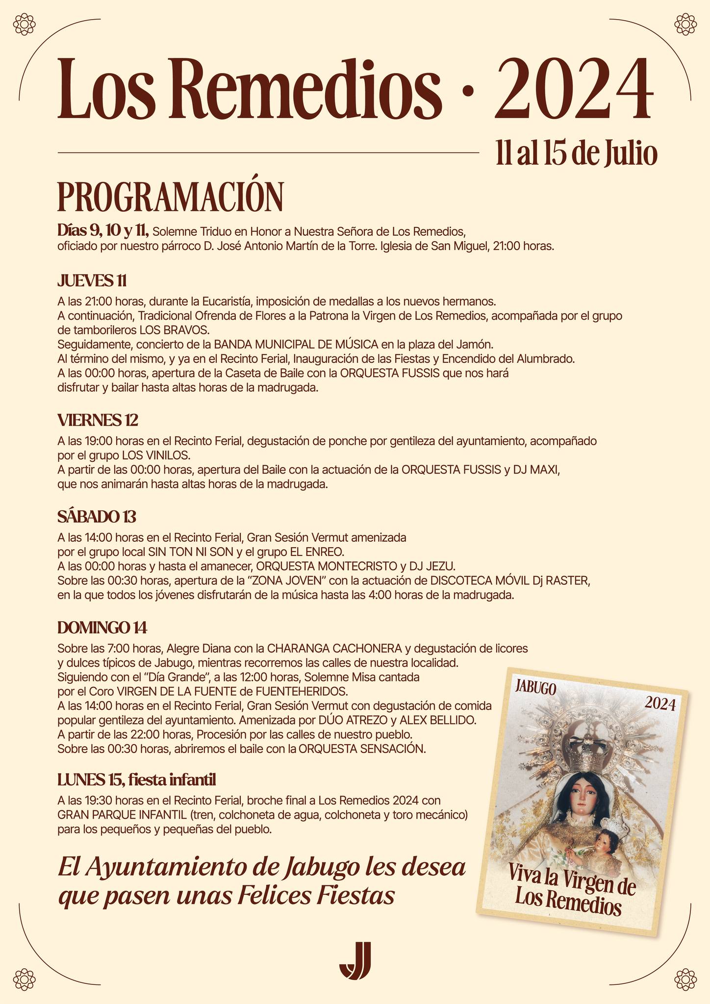 El pueblo de Jabugo espera con entusiasmo salir a las calles y vivir estas festividades junto a los vecinos y visitantes. Se desean a todos unas felices fiestas patronales.