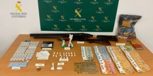 La Guardia Civil también ha hallado útiles de pasaje, envasado y corte de la droga y dos armas, junto a dinero en efectivo.