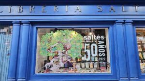 De toda Andalucía, Librería Saltés ha sido la elegida como anfitriona de este proyecto, en donde la ilustradora Alba Gallardo ha recreado en el escaparate de la mítica librería la frase elegida por la traductora Gudrun Palomino.