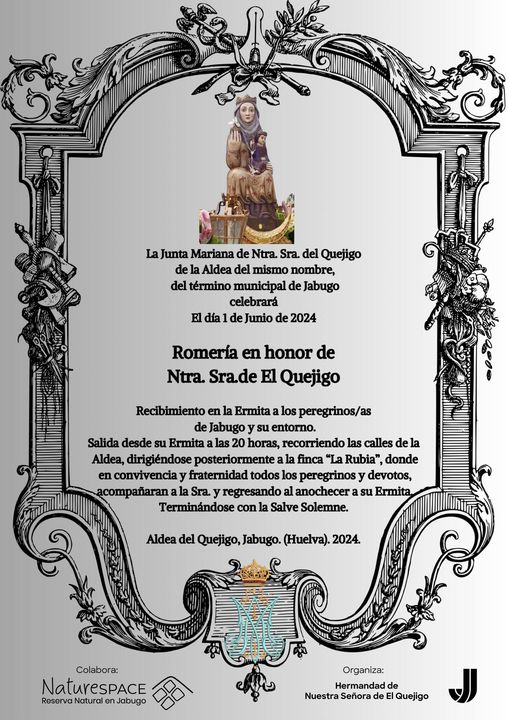 La Junta Mariana de Ntra. Sra. del Quejigo invita a toda la comunidad a participar en la Romería que se celebrará el próximo sábado 1 de junio. Este evento, caracterizado por la mezcla de fiesta y devoción, comenzará por la mañana con el recibimiento en la Ermita de los peregrinos y peregrinas provenientes de Jabugo y sus alrededores.
