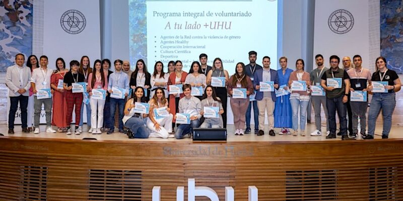 El acto comenzó con el reconocimiento al compromiso institucional, cultural y social, como el que se ha brindado a las delegaciones de titulación y el Consejo de Alumnos y Representantes de la Universidad de Huelva (Caruh), a los proyectos estudiantiles Moto ETSI, Club de Lectura Universo UHU y Club de prensa Mundo UHU y a los miembros del programa de voluntariado ‘A tu lado+UHU’. Gracias al compromiso del estudiantado, se colabora desde diferentes ámbitos en la conservación del medioambiente, la organización de eventos deportivos, la promoción de la salud, la conciencia contra la violencia de género, la cooperación internacional y se trabaja desde el punto de vista social para construir una sociedad mejor y más justa.