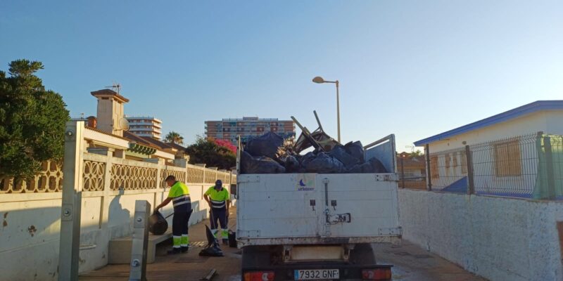 Los servicios de limpieza concluyeron el aseo de la franja costera a las 8.30 horas