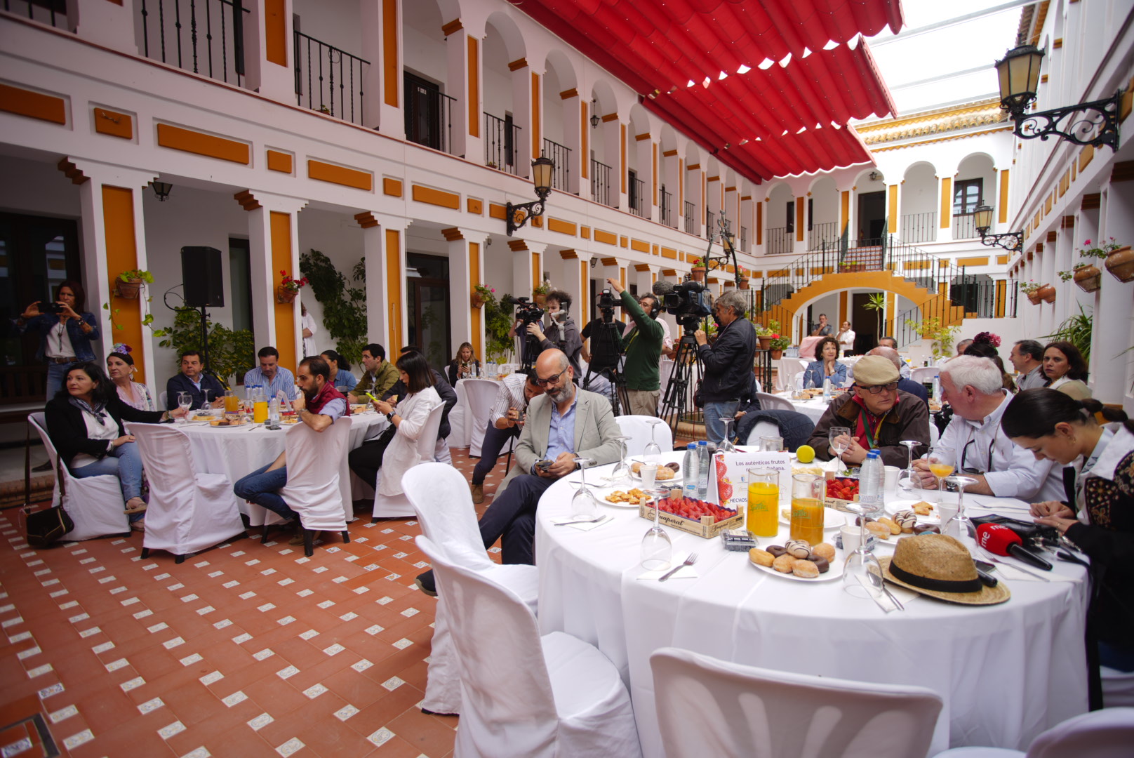 El alcalde de Almonte, Francisco Bella, y el presidente de la Diputación de Huelva, David Toscano, se han dado cita hoy en un desayuno informativo en El Rocío, para dar cuenta de los diferentes servicios que van a ofrecer durante la Romería.