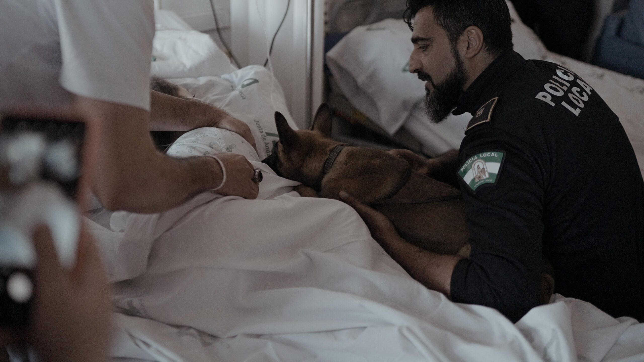 Unidades caninas de la Policía han visitado a los menores del Hospital Universitario Juan Ramón Jiménez con motivo de la celebración hoy del Día Mundial de la Infancia Hospitalizada, una iniciativa coordinada por la Sociedad Española de Pediatría Social (SEPS) para rendir homenaje a los niños y niñas hospitalizados, sus familias, el personal sanitario y los voluntarios.
