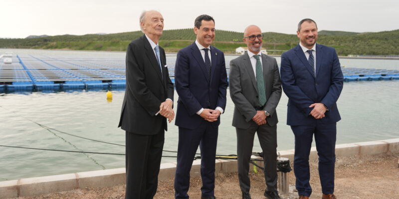 El presidente de la Junta, Juanma Moreno, ha inaugurado hoy la planta fotovoltaica flotante para autoconsumo que permitirá a la aceitera Castillo de Canena en el municipio jiennense de Úbeda autoabastecerse gracias a la energía generada de forma sostenible, evitando la emisión de más de 800 toneladas de CO2 al año, lo que supone el equivalente al consumo anual de unas 500 viviendas de tamaño medio.
