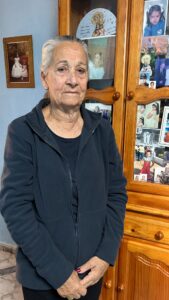 María del Carmen González Tierra, nacida en Punta Umbría en una familia humilde. Desde muy pequeña ha estado trabajando en casa, haciéndose cargo de sus hermanos y primos. Y para sacar adelante a los suyos ha blanqueado, limpiado, colaborado en el muelle en lo que hiciera falta… Se casó a los 19 años con Carmelo, fallecido recientemente. Con él ha tenido dos hijos y tres nietos. Siempre ha sido ama de casa y ha ayudado a sus familiares en todo lo que han necesitado.