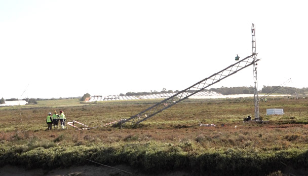 En la jornada de este martes se ha procedido a la intervención y trabajos de sustitución de torres de alta tensión en el paraje natural Marismas del Río Piedras.