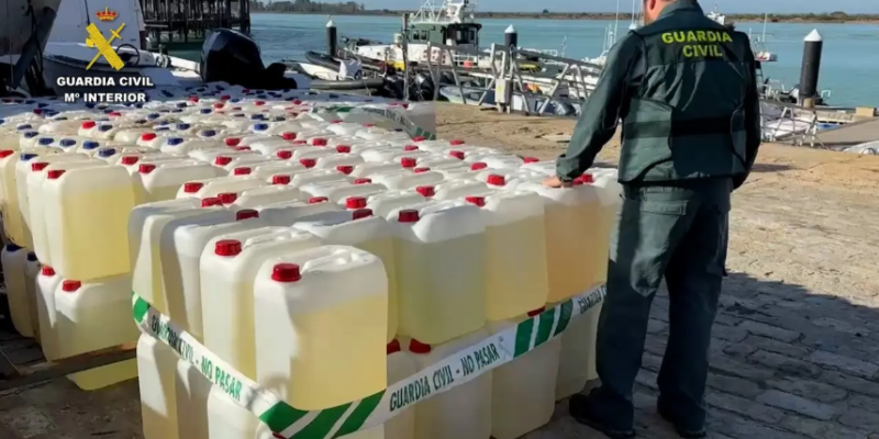 La Guardia Civil ha intervenido 433 garrafas de combustible en la localidad de Lepe, las cuales podrían estar relacionadas con el apoyo logístico a narcolanchas.