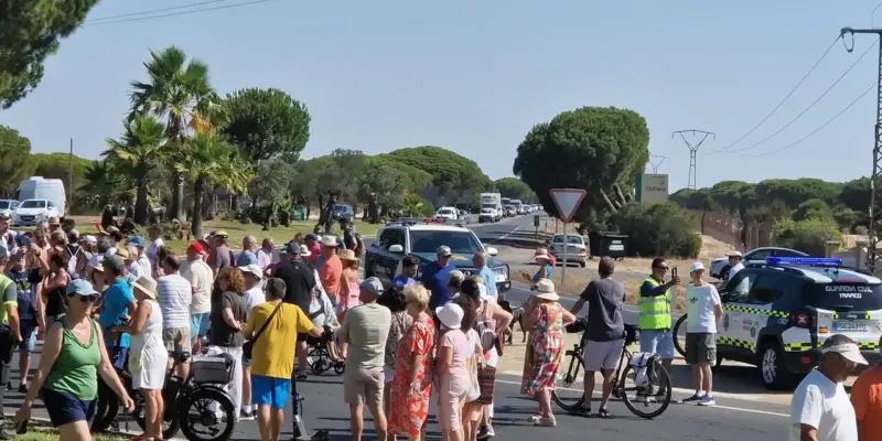 El corte de tráfico llevado a cabo este viernes por la Asociación de Propietarios de Matalascañas en los accesos a dicho núcleo turístico ha dejado una imagen para la preocupación y la indignación de residentes en la zona.